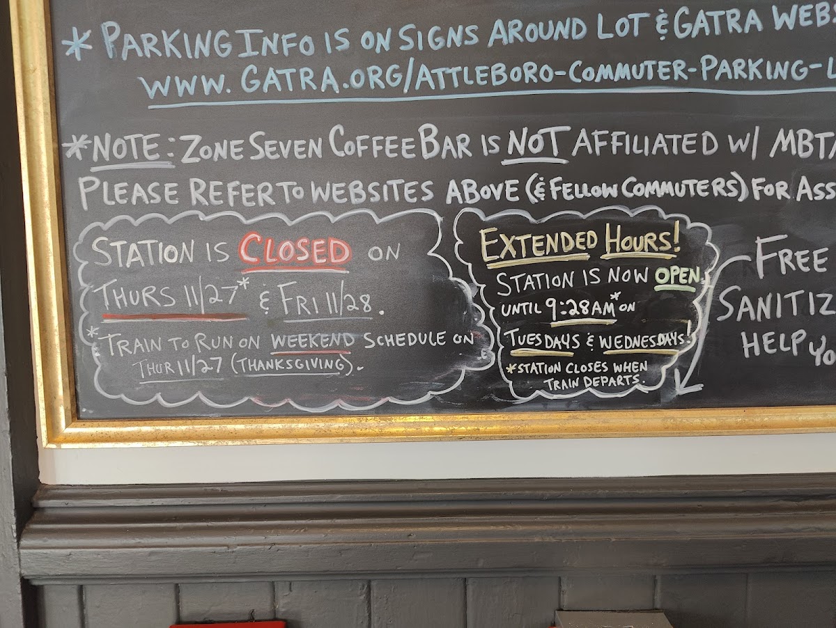 The menu is primarily designed for quick ordering and fast service, making it suitable for customers looking for convenient options before or during commutes. Hours and offerings align with morning train schedules, focusing on breakfast items and coffee service.